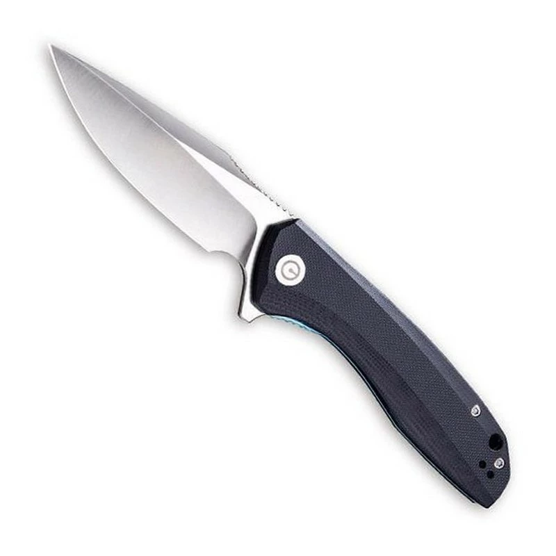 Lame en acier inox 9Cr18MoV satiné avec « flipper », mécanisme « Ball bearing » et cran intérieur.