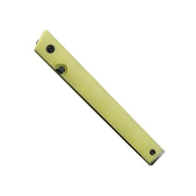 Lame en acier 8Cr13MoV finition « blackwash » à cran intérieur et à bouton.