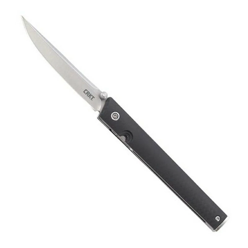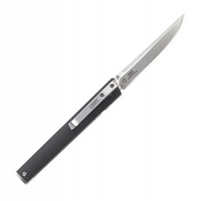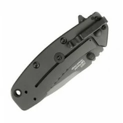 Lame en acier inox 8Cr14MoV satiné à cran intérieur et à bouton double.