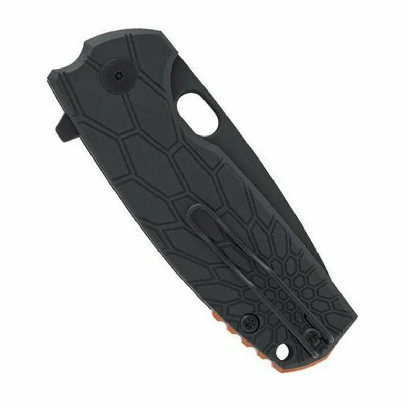 Lame noire à trou acier inox N690Co avec « flipper » et cran intérieur.
