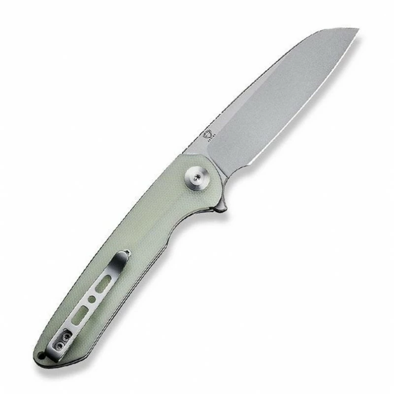 Lame pied de mouton en acier 9Cr18MoV finition « stonewashed » avec « flipper », mécanisme « Ball bearing » et cran intérieur, d’une longueur de 8 cm.