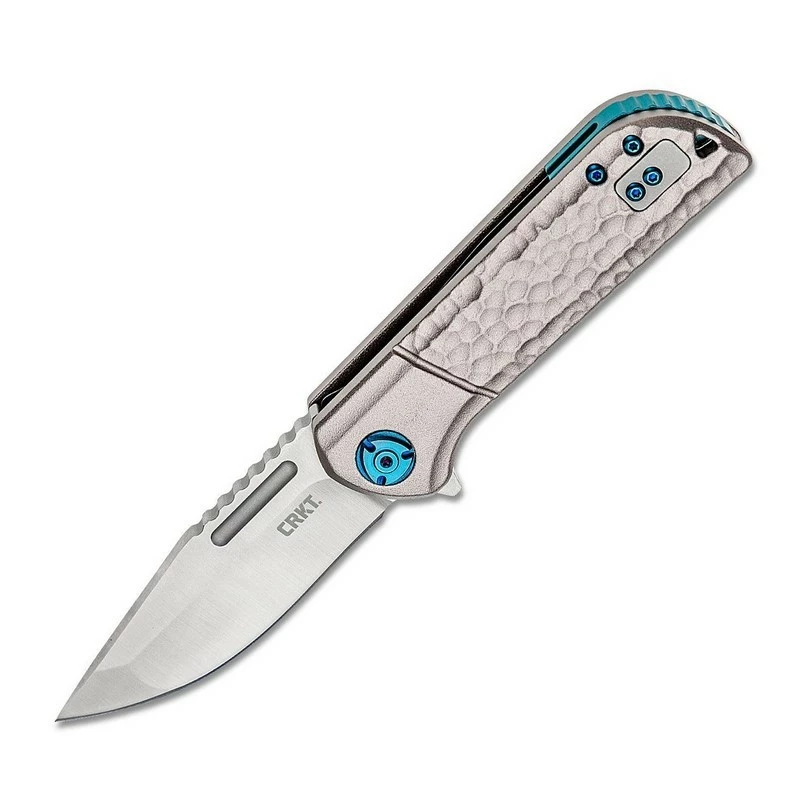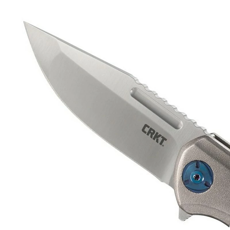 Lame en acier 8Cr13MoV satiné avec « flipper », système d’ouverture assistée et cran intérieur.