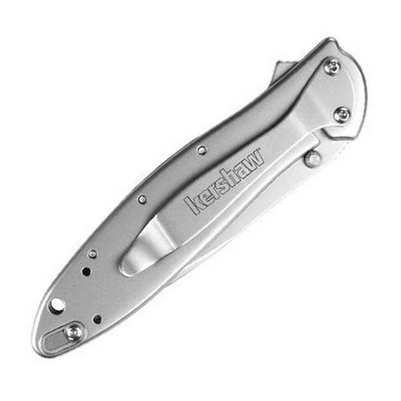 Lame en acier inox 14C28N avec « flipper », bouton double, ouverture assistée « SpeedSafe® », cran intérieur et système de verrouillage de la lame fermée.