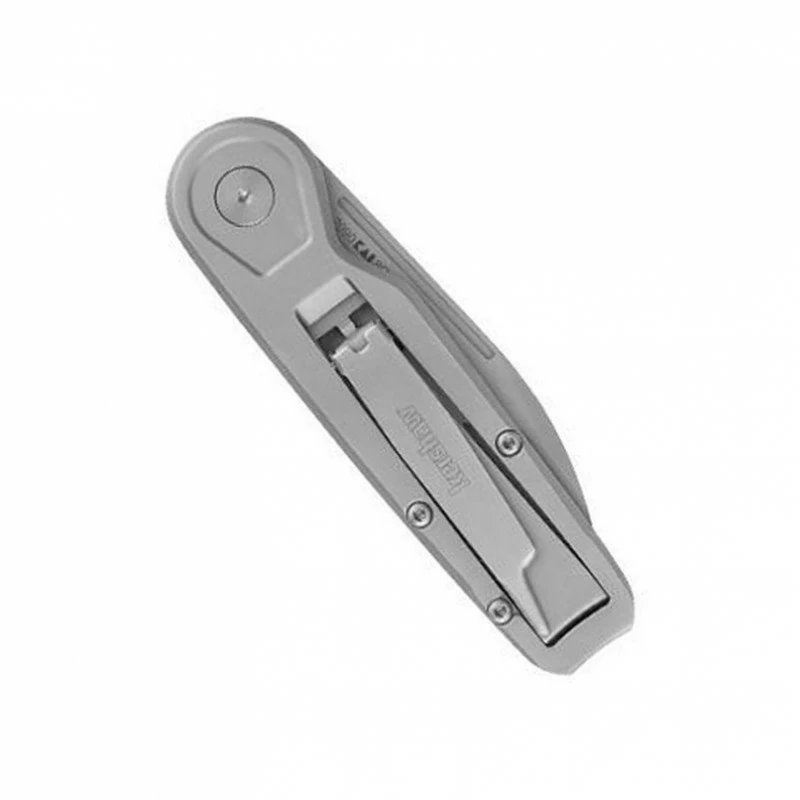 Manche en nylon/fibre de verre noir au recto et acier inox avec coupe-ongles et lime intégrés au verso, d’une longueur de 10 cm.