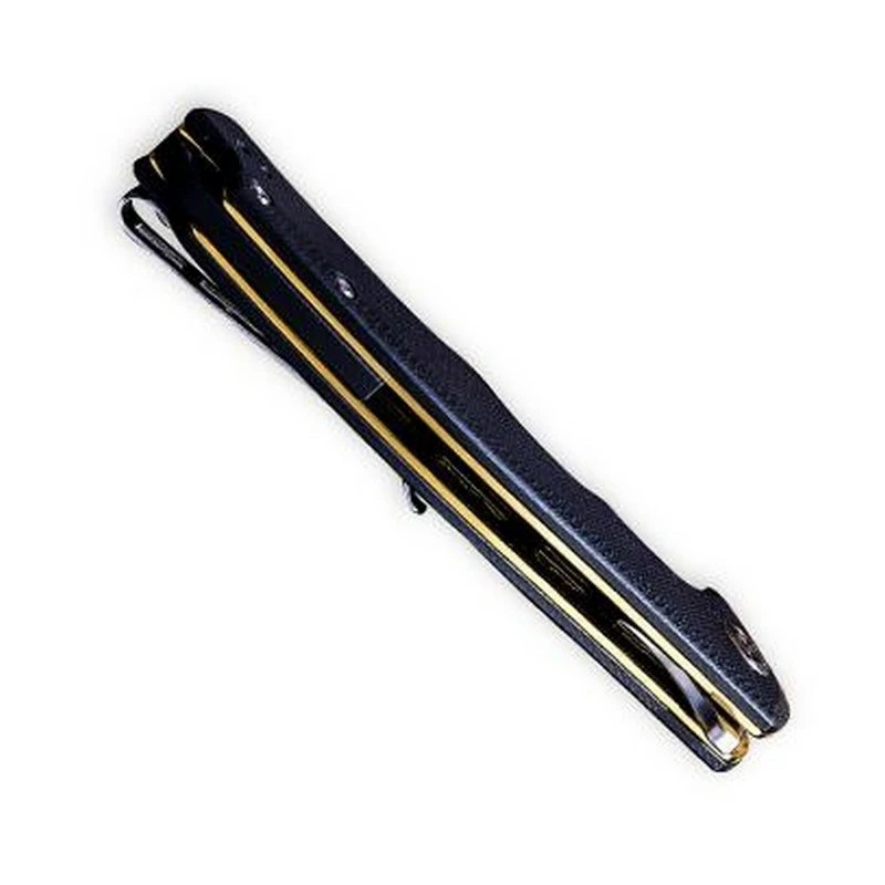 Lame en acier inox 9Cr18MoV satiné avec « flipper », mécanisme « Ball bearing » et cran intérieur.