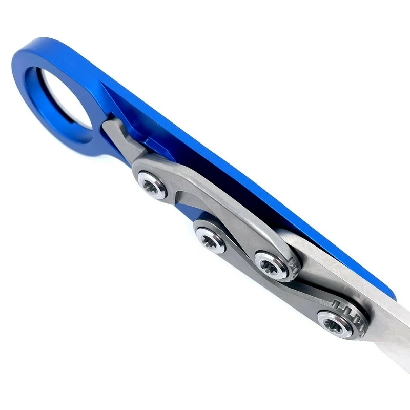 Manche en aluminium 6061 bleu métallique avec anneau et clip ceinture.
