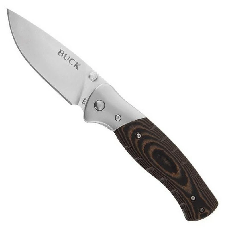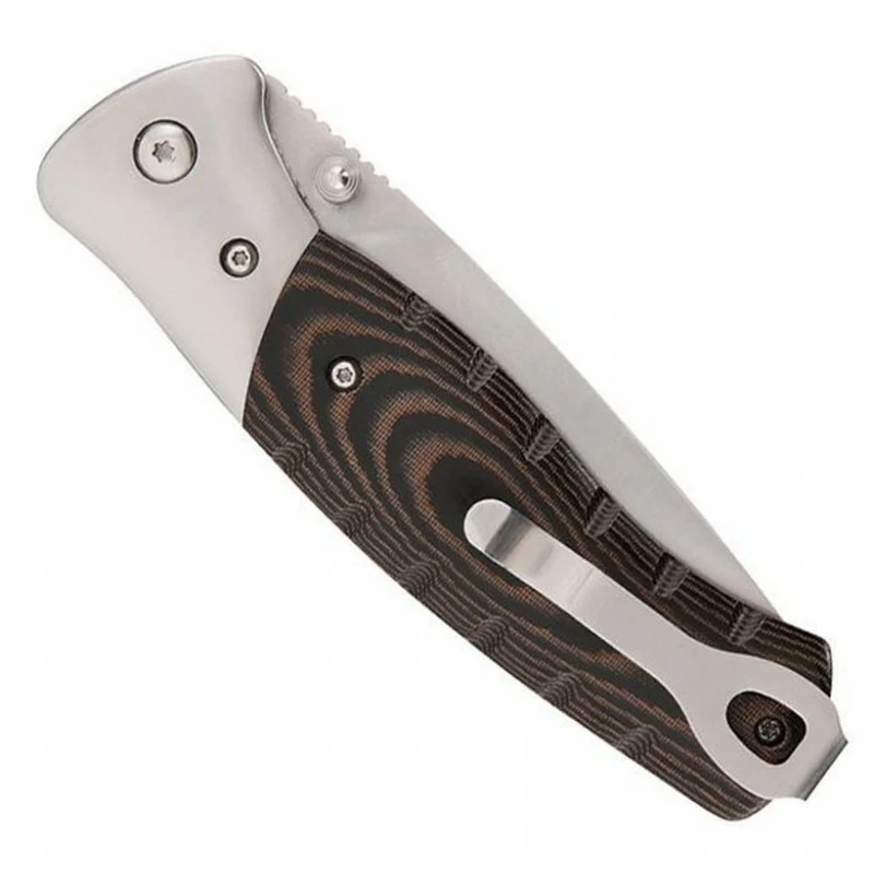 Manche en micarta marron/noir d’une longueur de 11 cm.
