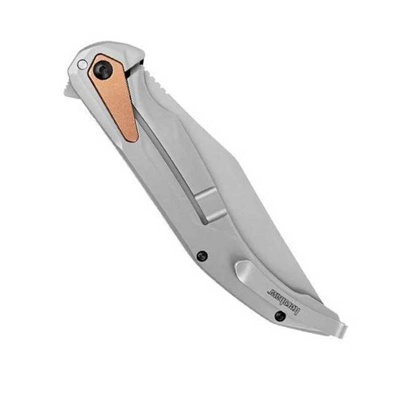 Lame en acier D2 avec « flipper », mécanisme « KVT Ball bearing » et cran intérieur.